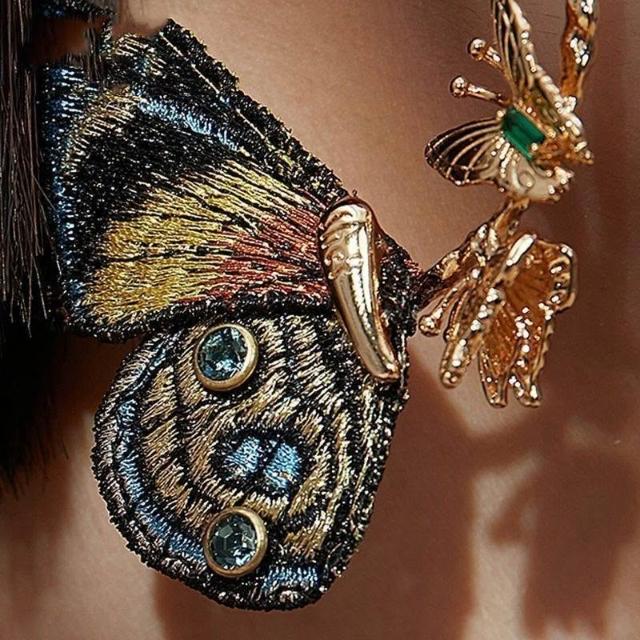 刺繡蝴蝶氣質環形耳環針耳釘女夏季小衆設計感耳飾品耳墜