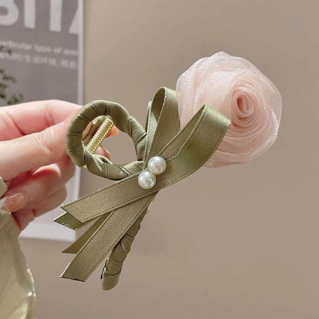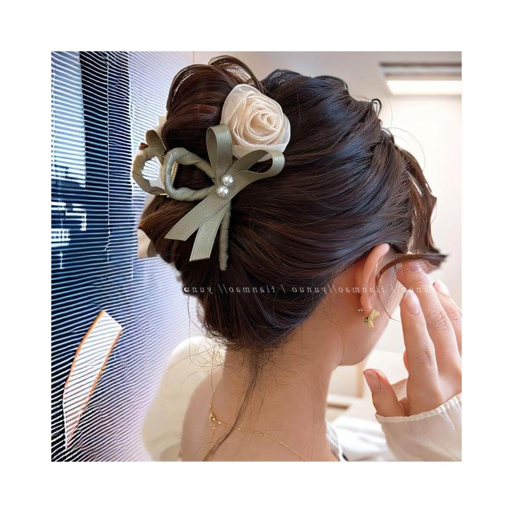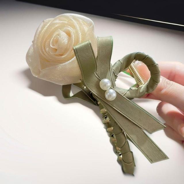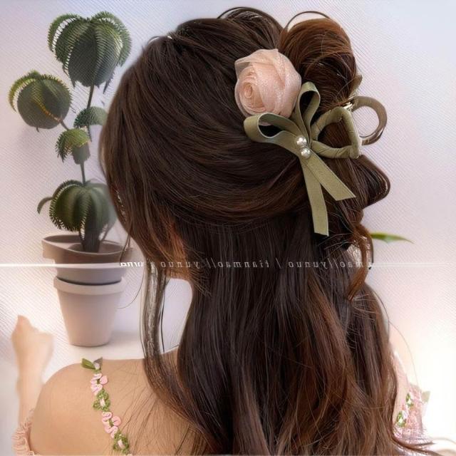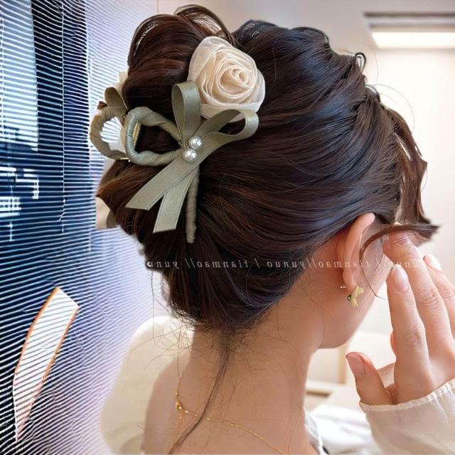 溫柔玫瑰新款花朵鬱金香髮夾後腦勺盤發鯊魚夾森系氣質頭飾抓夾