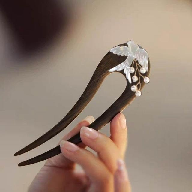 歸燕 素雅檀木質髮簪子簡約u型髮釵盤發配飾高級感日常雙股新中式