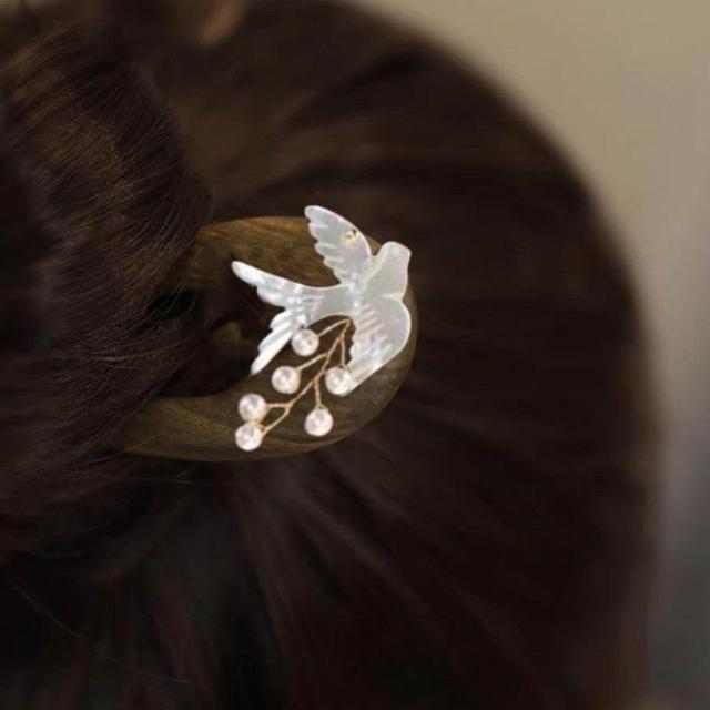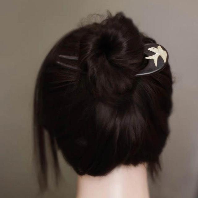 歸燕 素雅檀木質髮簪子簡約u型髮釵盤發配飾高級感日常雙股新中式