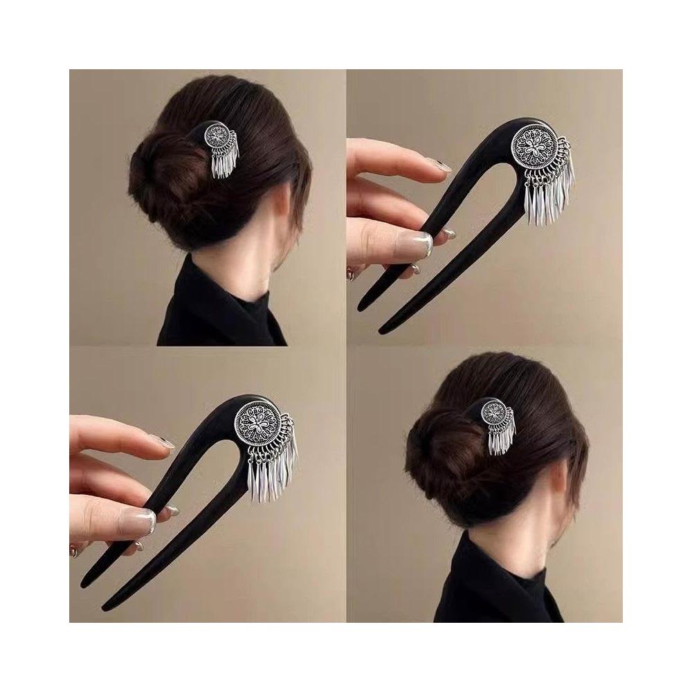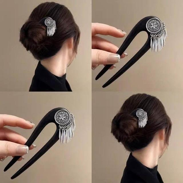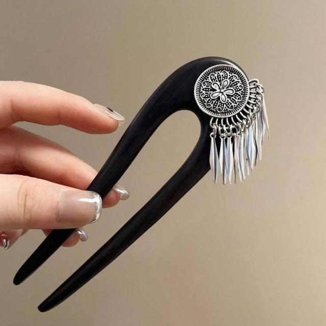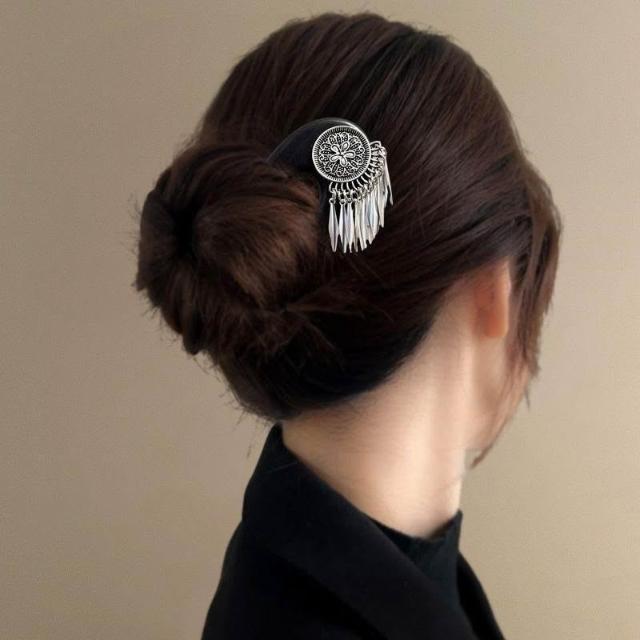銀川落雪~古風發簪小花流蘇木質簪子頭飾馬面裙盤髮釵盤發器u型簪