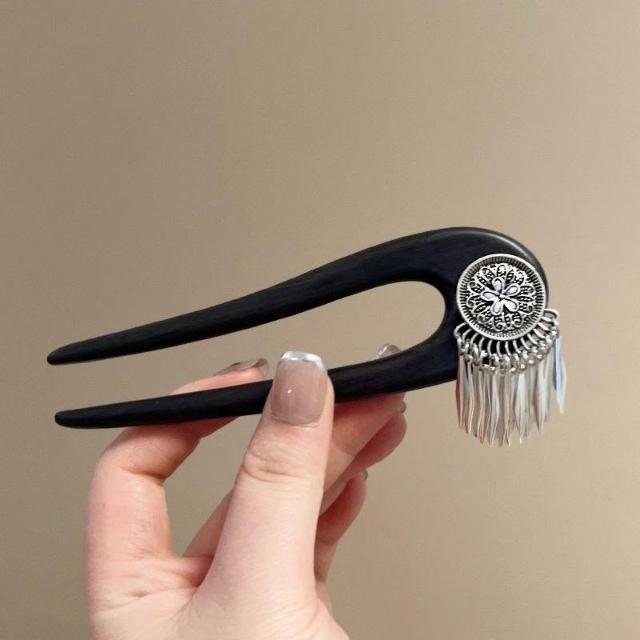 銀川落雪~古風發簪小花流蘇木質簪子頭飾馬面裙盤髮釵盤發器u型簪