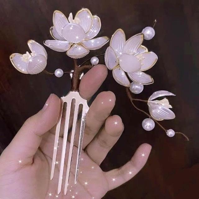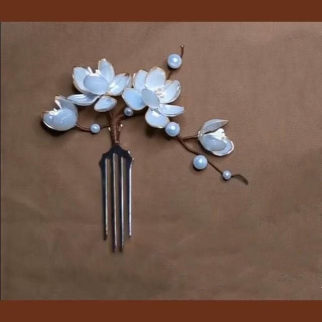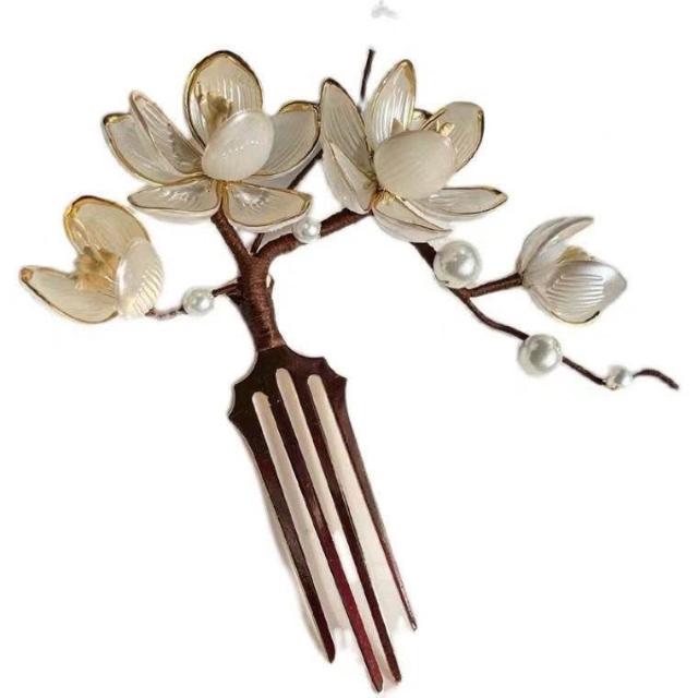 白玉蘭髮梳 古風發簪髮釵髮夾髮梳u釵木簪漢服古風配飾明制頭飾