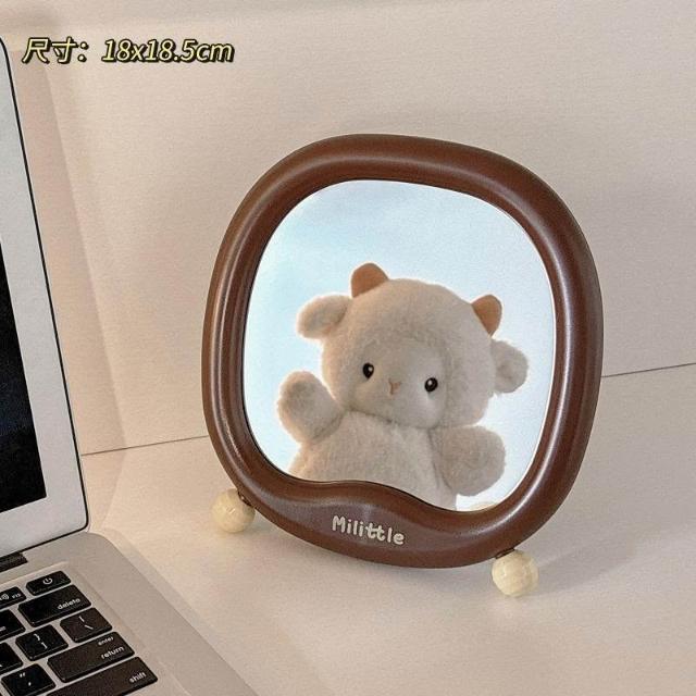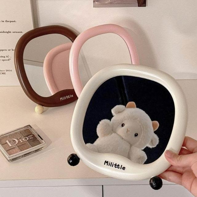小尾巴鏡子可愛化妝鏡桌面便攜學生宿舍家用辦公室臺式可立梳妝鏡