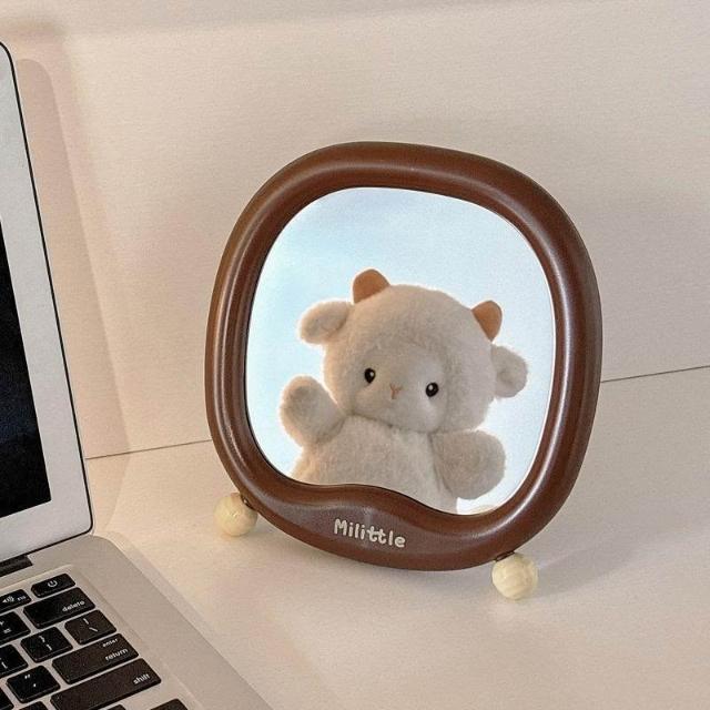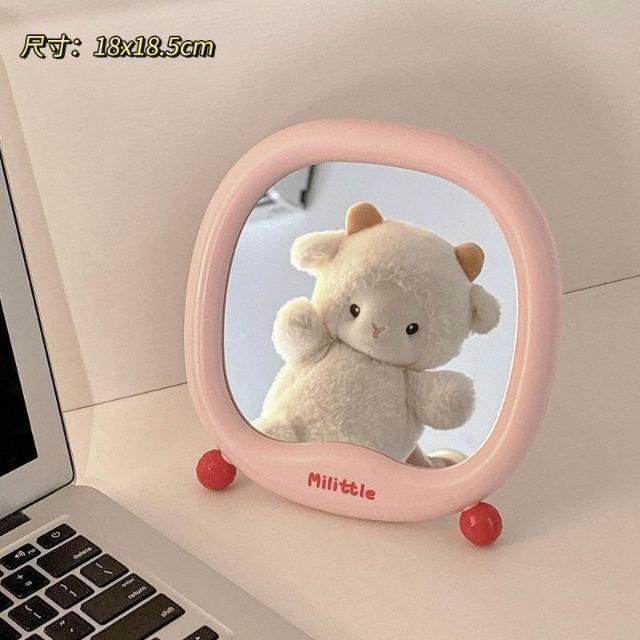 小尾巴鏡子可愛化妝鏡桌面便攜學生宿舍家用辦公室臺式可立梳妝鏡