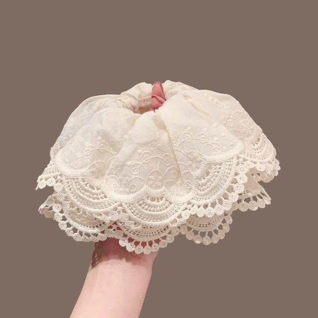 韓系公主白色蕾絲大腸網紗髮圈超大高級發繩春季髮飾新款蕾絲髮圈
