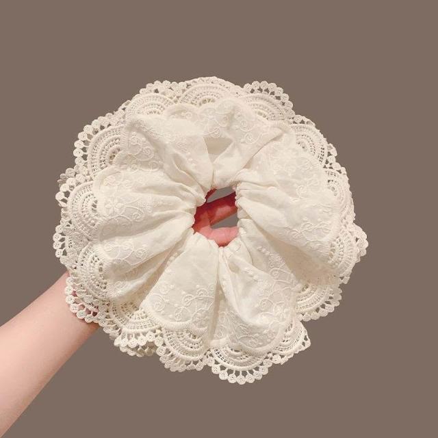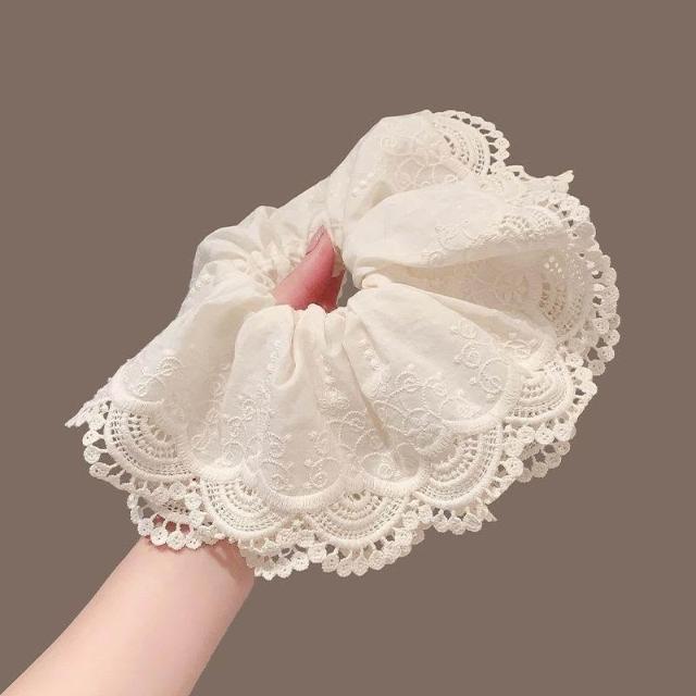 韓系公主白色蕾絲大腸網紗髮圈超大高級發繩春季髮飾新款蕾絲髮圈