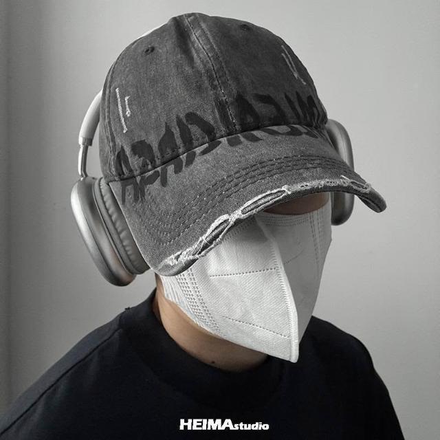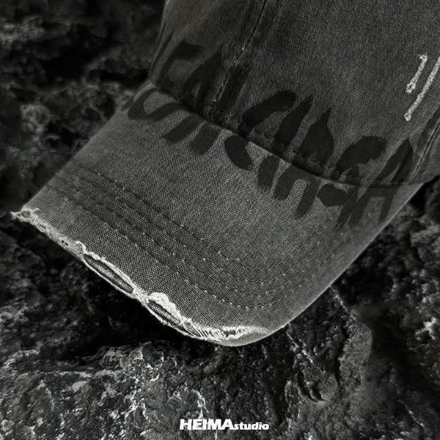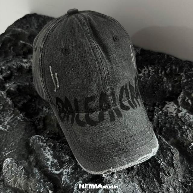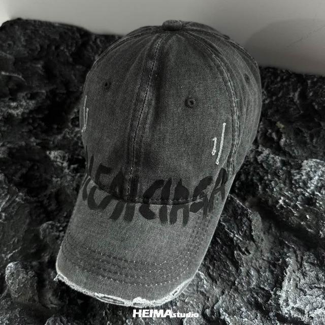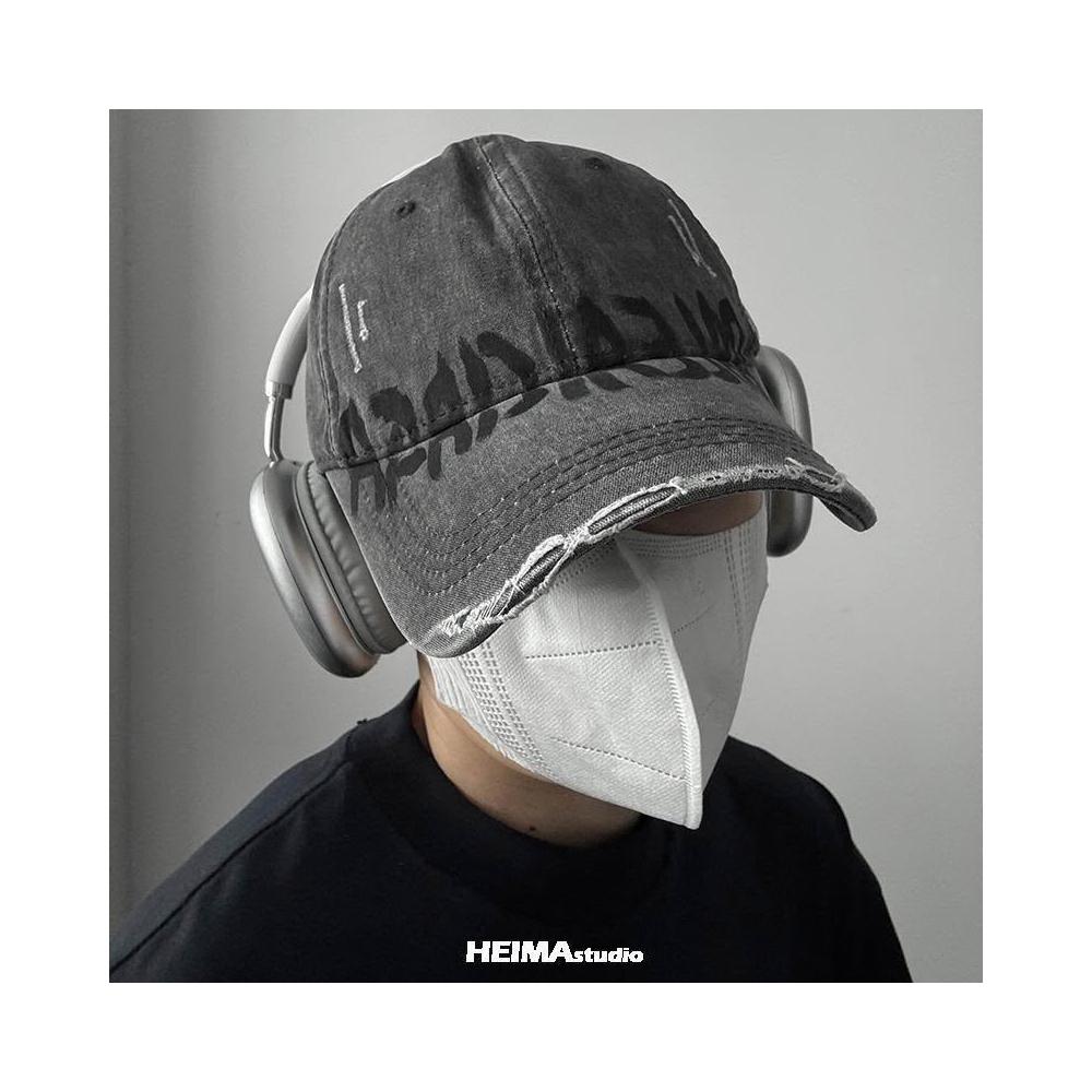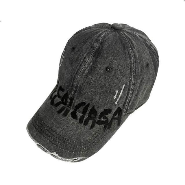 美式水洗做舊破洞棒球帽男女百搭字母鴨舌帽子顯臉小潮加深大頭圍