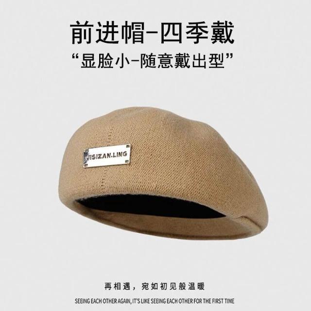 黑色反戴貝雷帽子女秋冬款大頭圍復古英倫前進帽顯臉小報童畫家帽