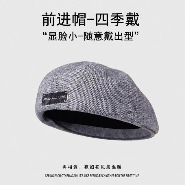 黑色反戴貝雷帽子女秋冬款大頭圍復古英倫前進帽顯臉小報童畫家帽