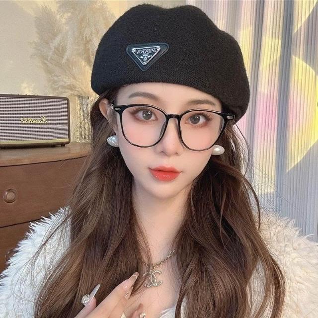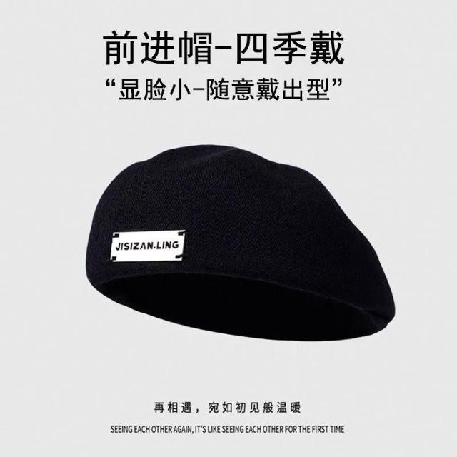 黑色反戴貝雷帽子女秋冬款大頭圍復古英倫前進帽顯臉小報童畫家帽