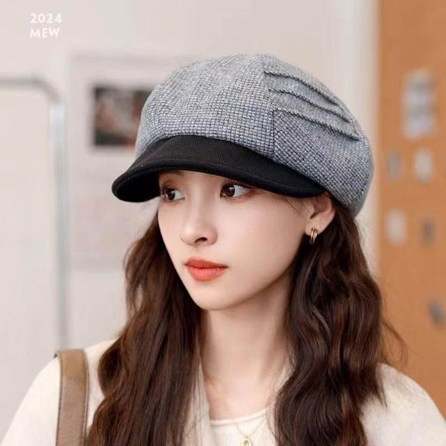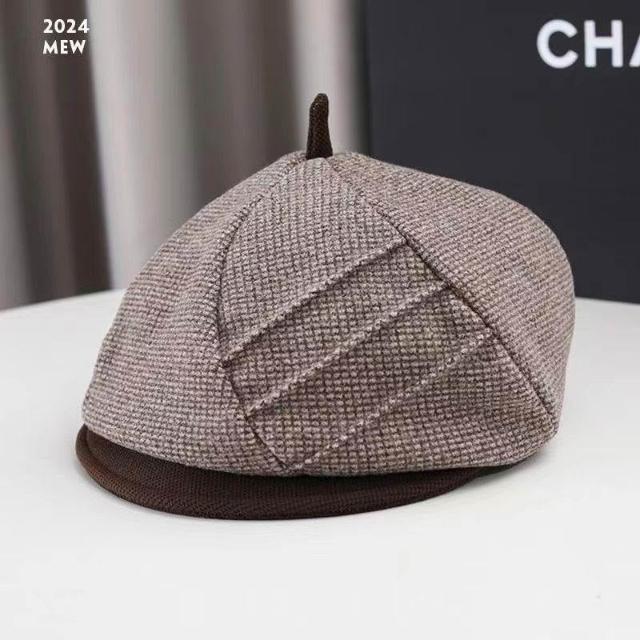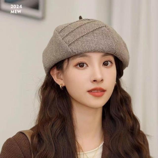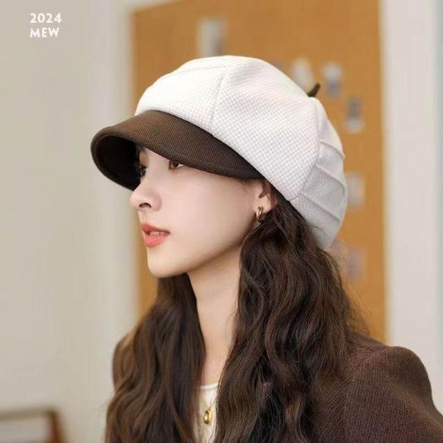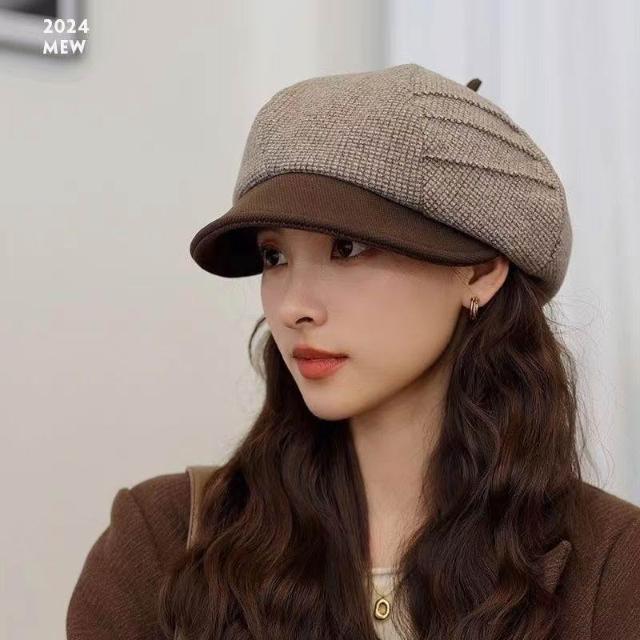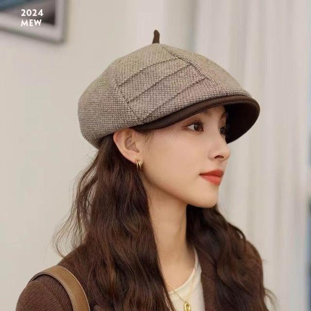 貝雷帽子女2024新款秋冬季英倫格子復古顯臉小八角帽鴨舌帽畫家帽