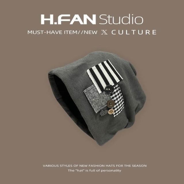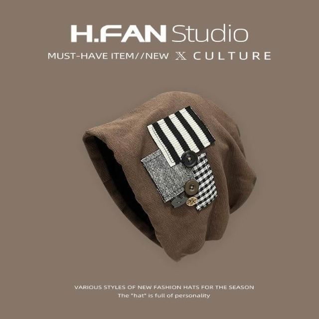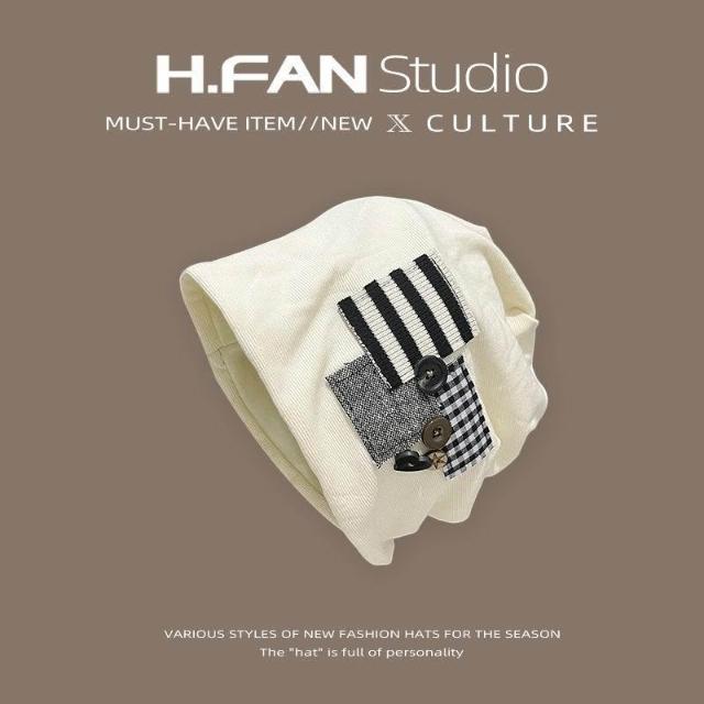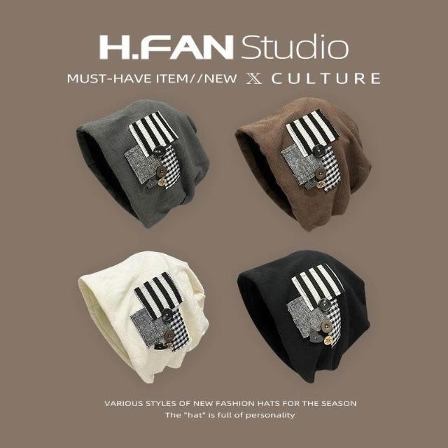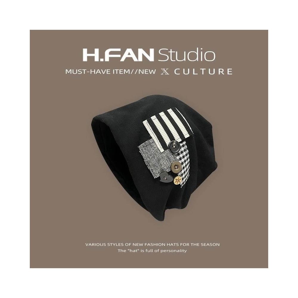 個性原創鈕釦貼布堆堆帽子女春秋薄款時尚大頭圍包頭冷帽韓版新款