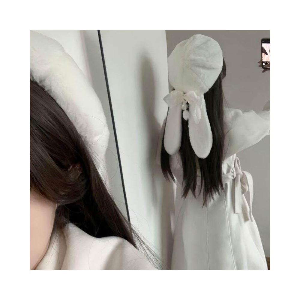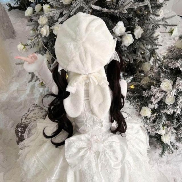 JK原創手作垂耳兔毛茸茸蝴蝶結八角帽旅拍搭配畫家帽