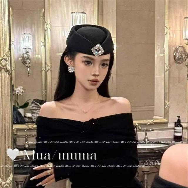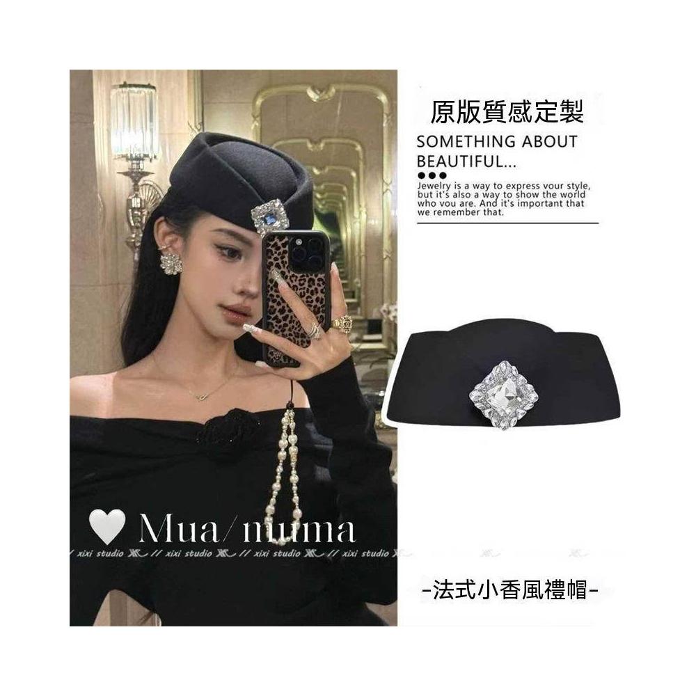 高級感方鑽黑色白色小禮帽千金風圓頂貝雷帽穿搭配飾帽子配禮服女