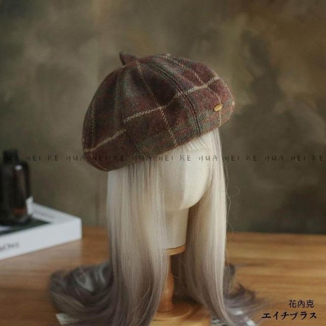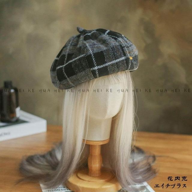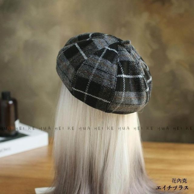 出口日韓格紋毛呢貝雷帽女秋冬復古英倫風百搭顯臉小畫家帽088