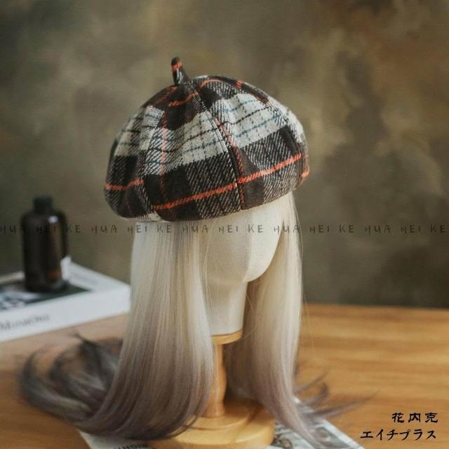 出口日韓格紋毛呢貝雷帽女秋冬復古英倫風百搭顯臉小畫家帽088