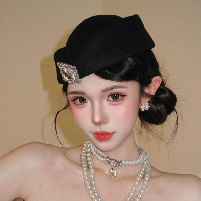 赫本風黑色貝雷帽子法式高級感小禮帽女空姐制服帽禮儀帽復古帽子