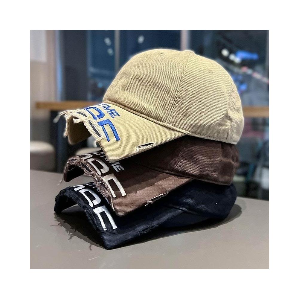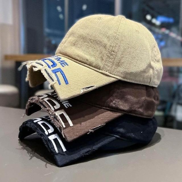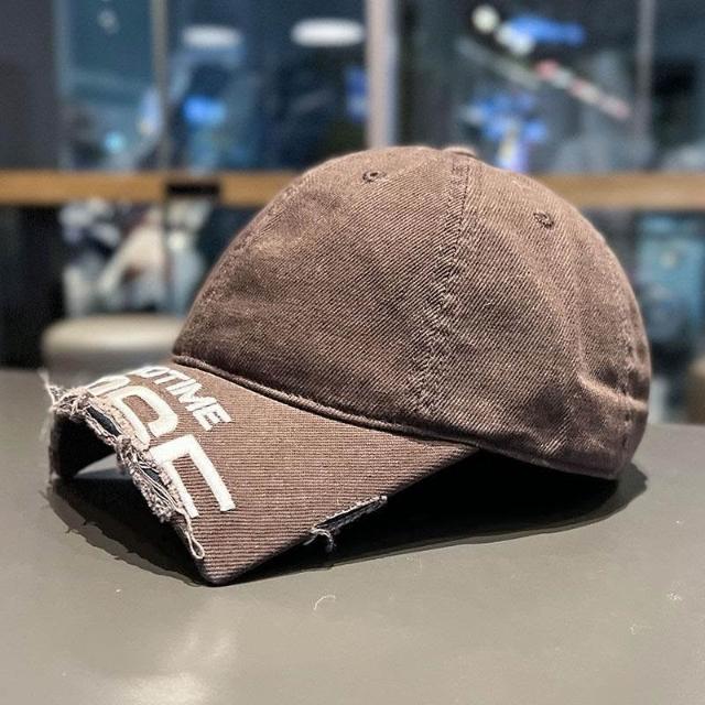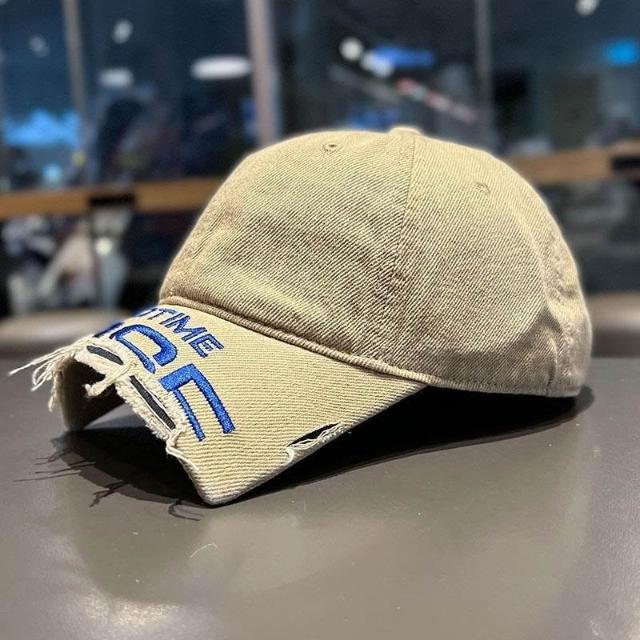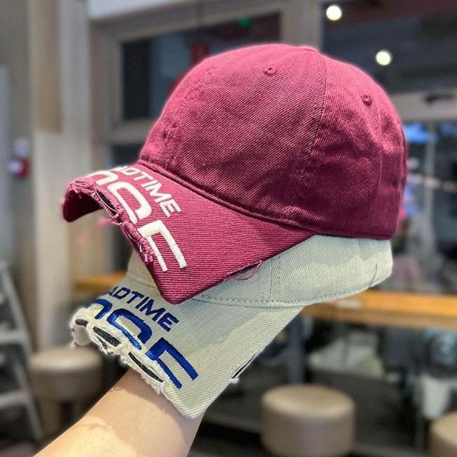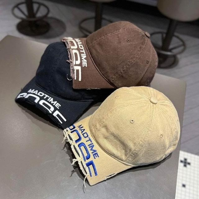 2025新款斷檐刺繡字母棒球帽男女王安宇同款水洗做舊磨破鴨舌帽子