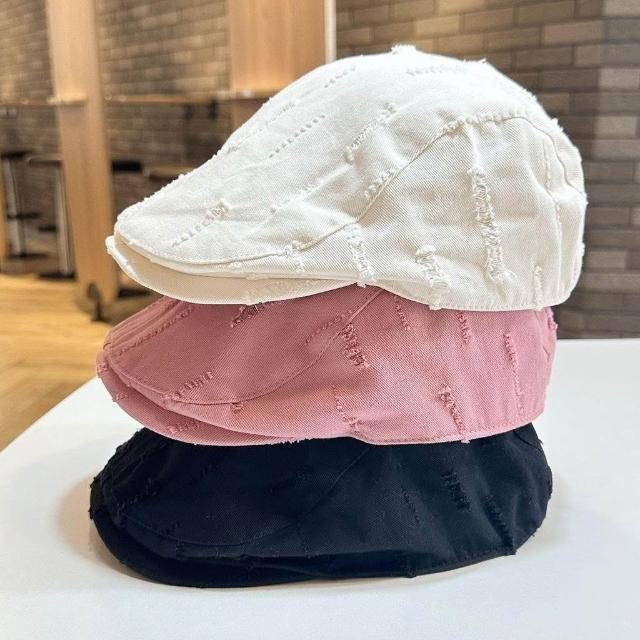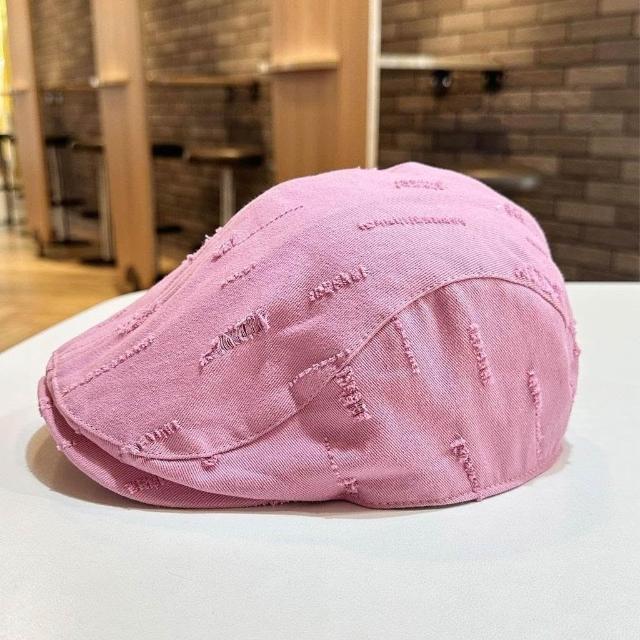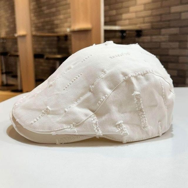 日系復古做舊破洞純棉貝雷帽女春秋百搭顯臉小畫家帽子男前進帽潮