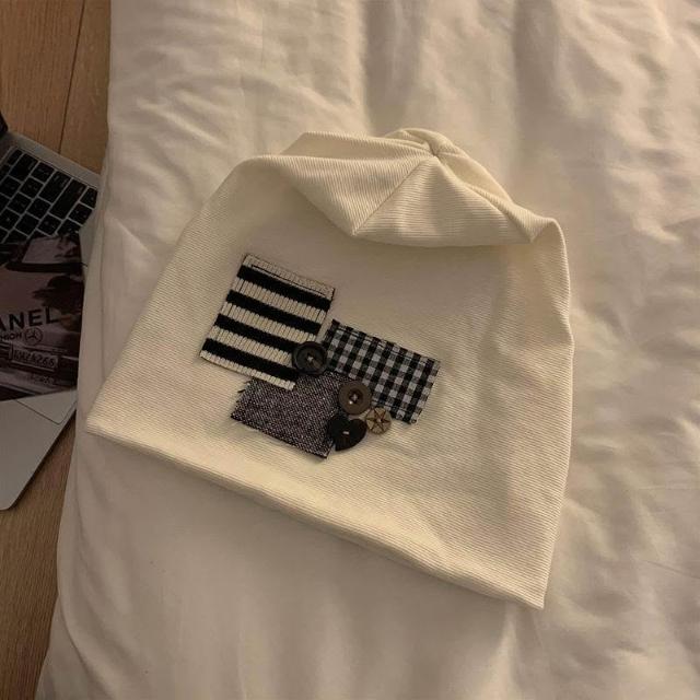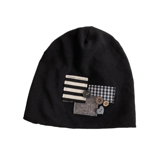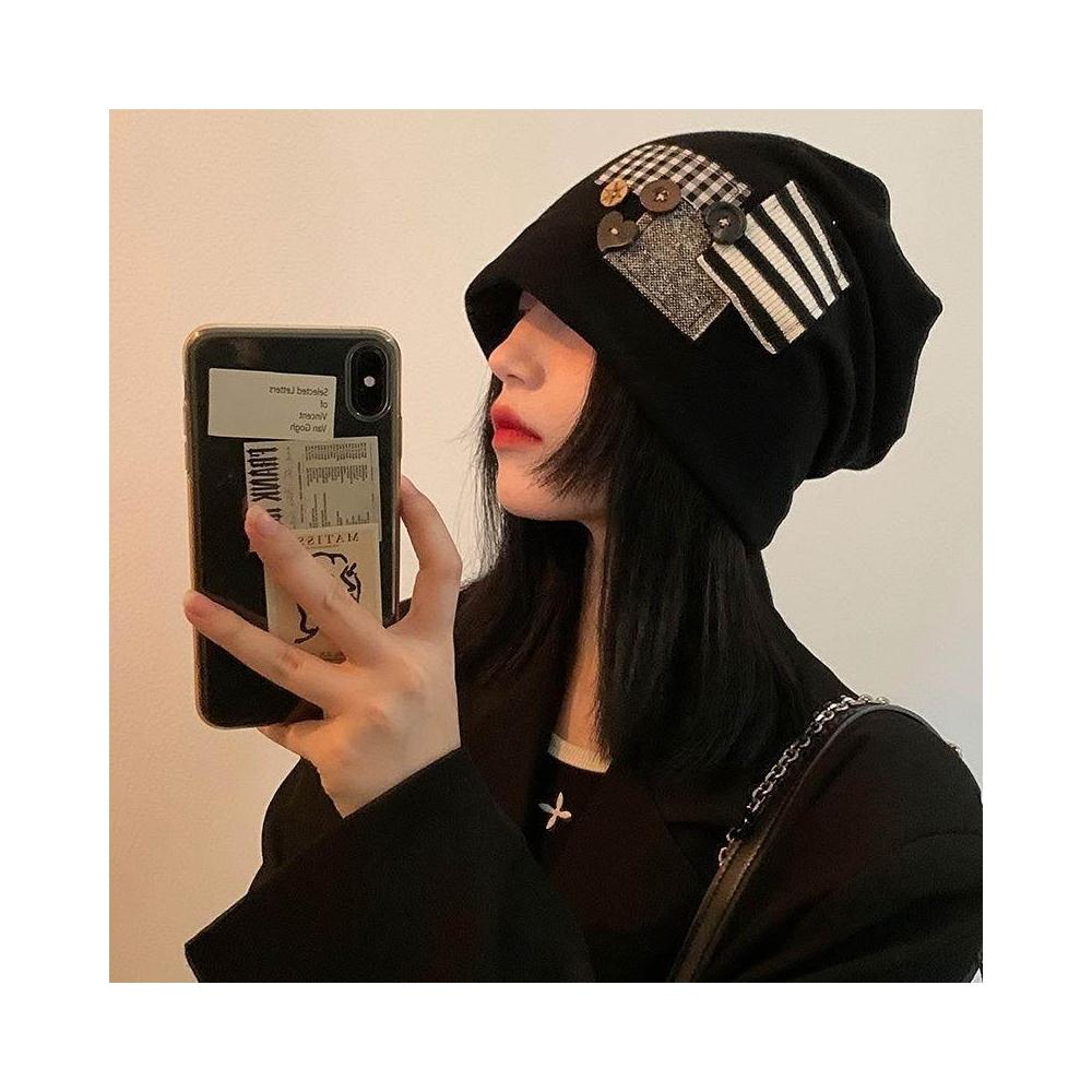 日系黑色堆堆帽女春秋款冷帽網紅條紋貼布設計感顯臉小大頭圍帽子