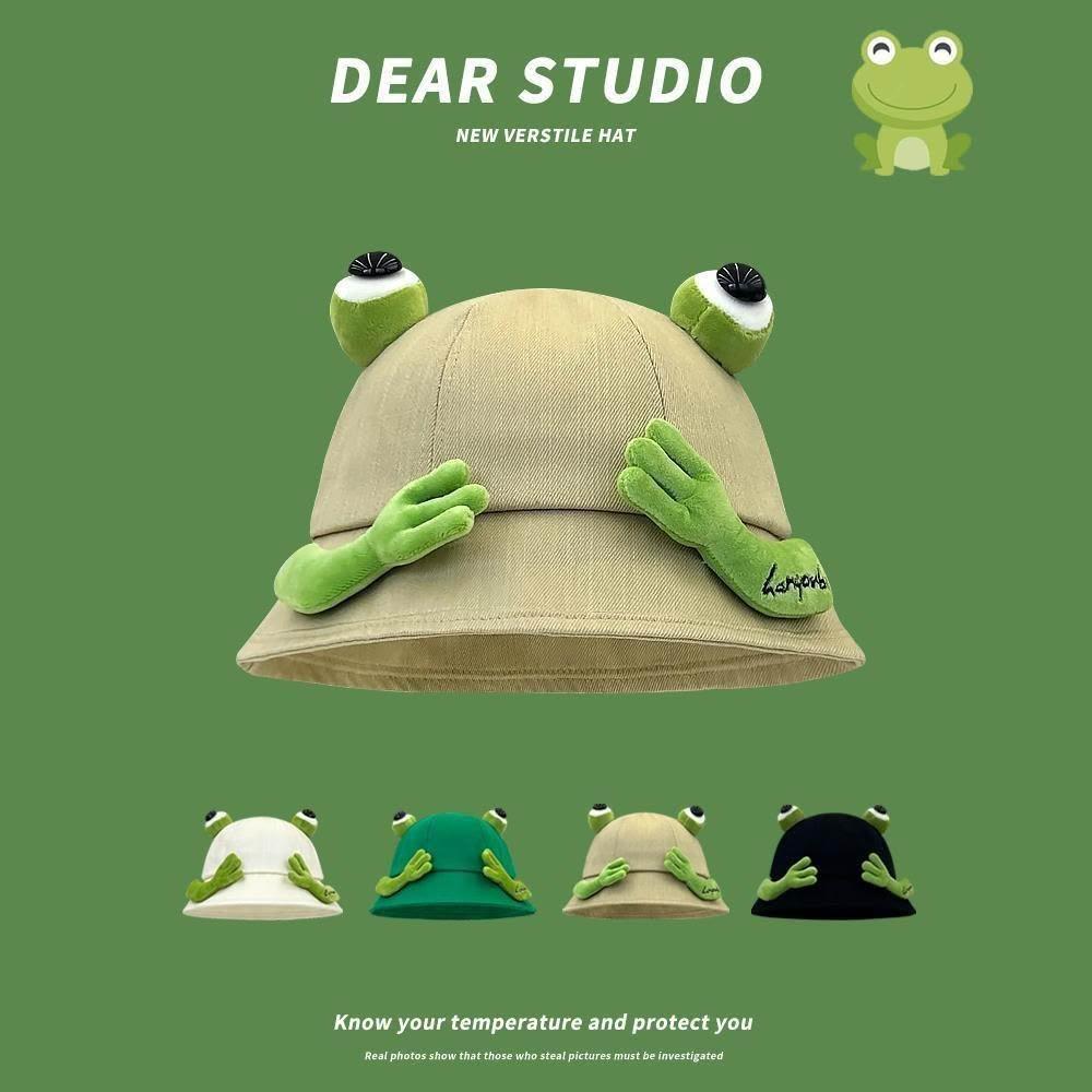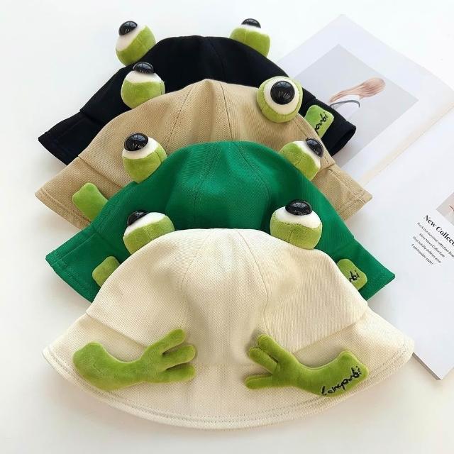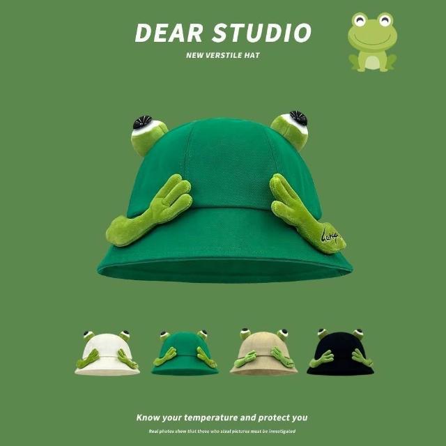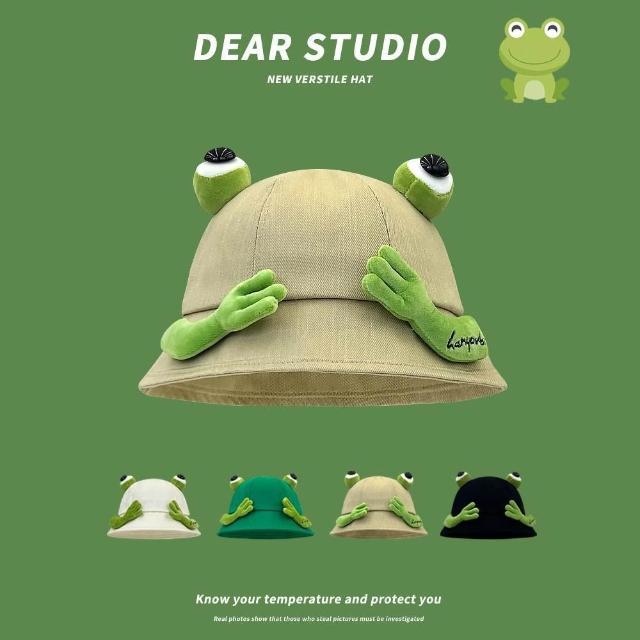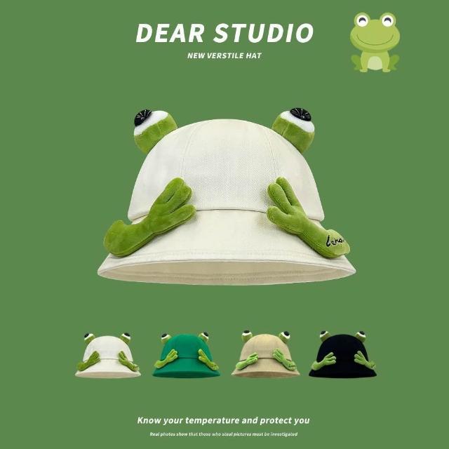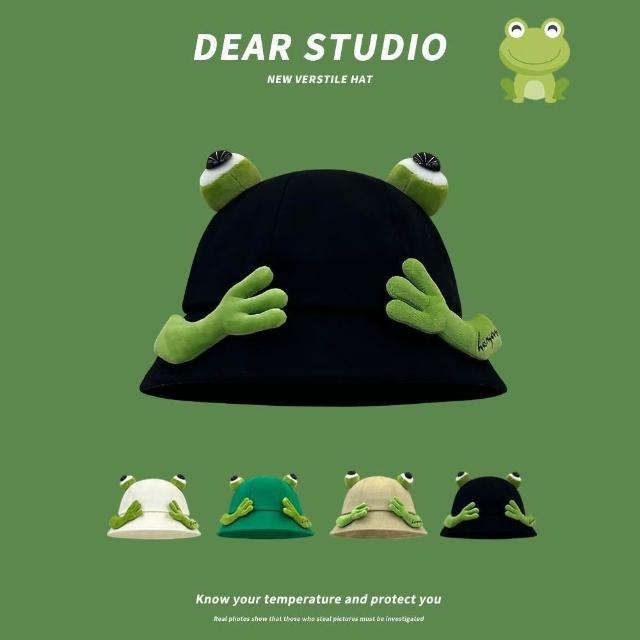 日系可愛青蛙漁夫帽子女春夏學生情侶百搭顯臉小盆帽遮陽帽
