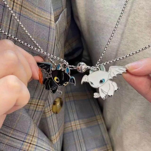 個性黑白龍煞情侶項鍊ins甜酷創意嘻哈小衆吊墜新款百搭閨蜜相吸