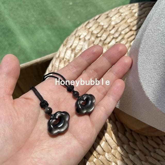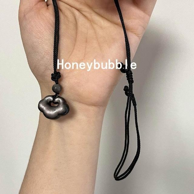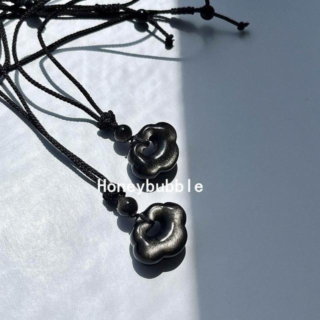 天然銀曜石祥雲鎖吊墜中式鎖骨鏈情侶項鍊黑曜石如意鎖平安鎖掛墜