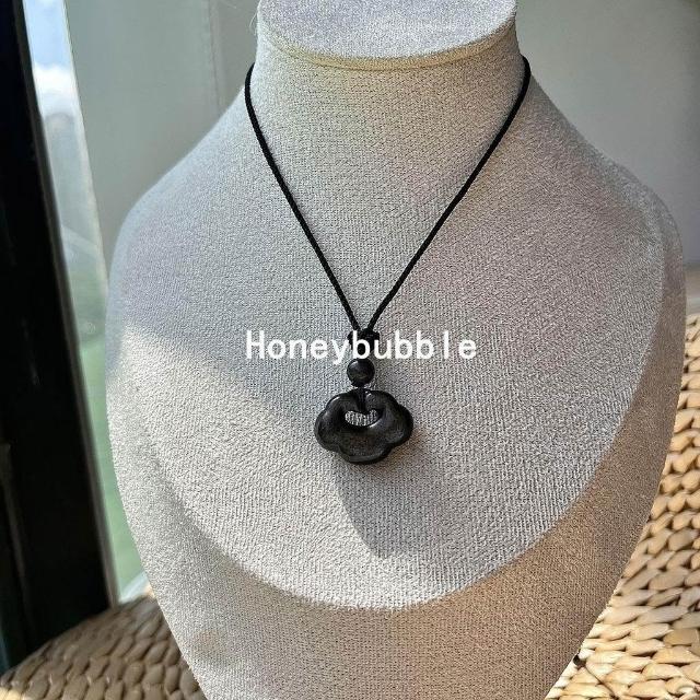 天然銀曜石祥雲鎖吊墜中式鎖骨鏈情侶項鍊黑曜石如意鎖平安鎖掛墜
