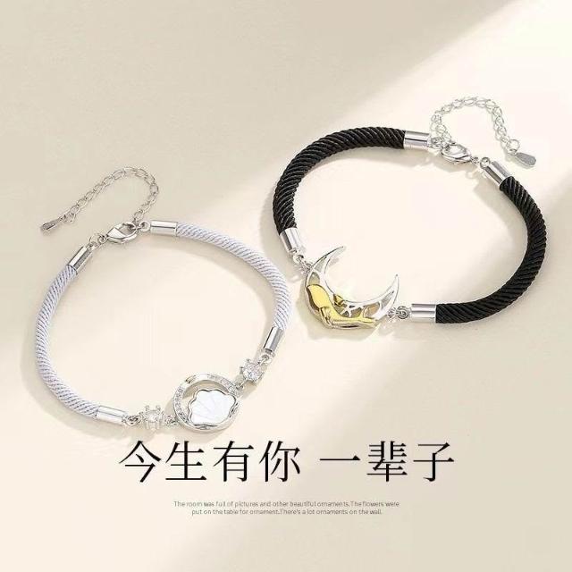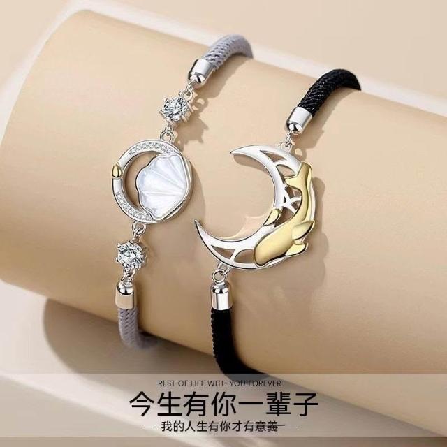 一輩子情侶手鍊一對磁吸輕奢鯨魚貝殼手環今生有你手繩女朋友禮物