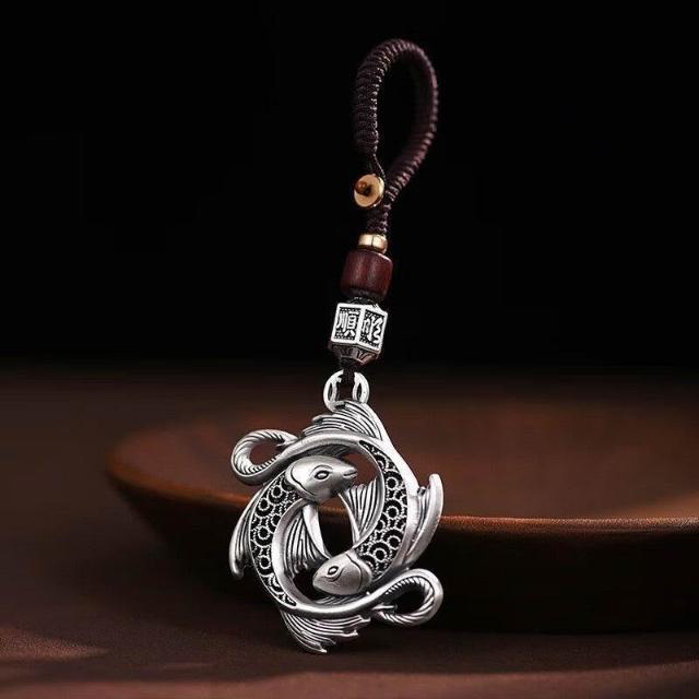 錦鯉雙魚汽車鑰匙掛件招財雙魚座鑰匙扣中秋節禮物情侶同款走心