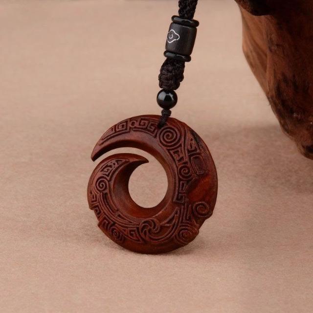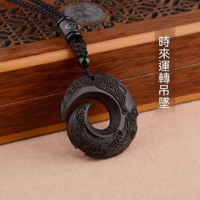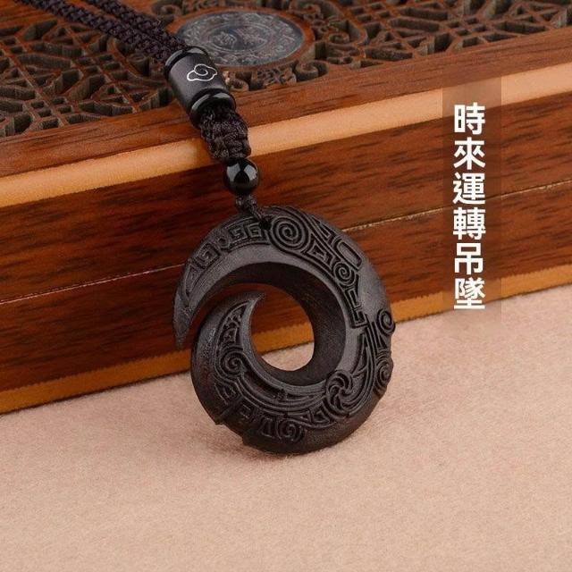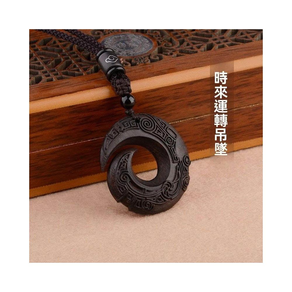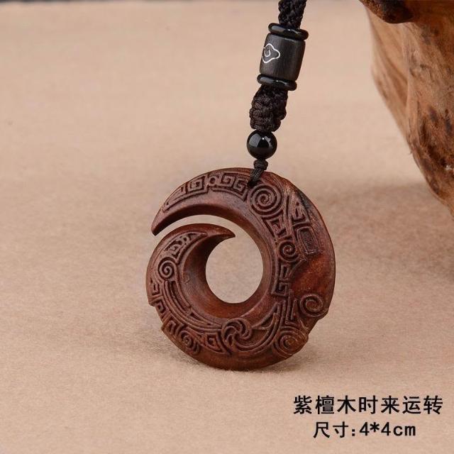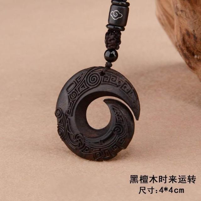 民族風復古檀木時來運轉高檔吊墜長款項鍊簡約文藝情侶毛衣鏈配飾