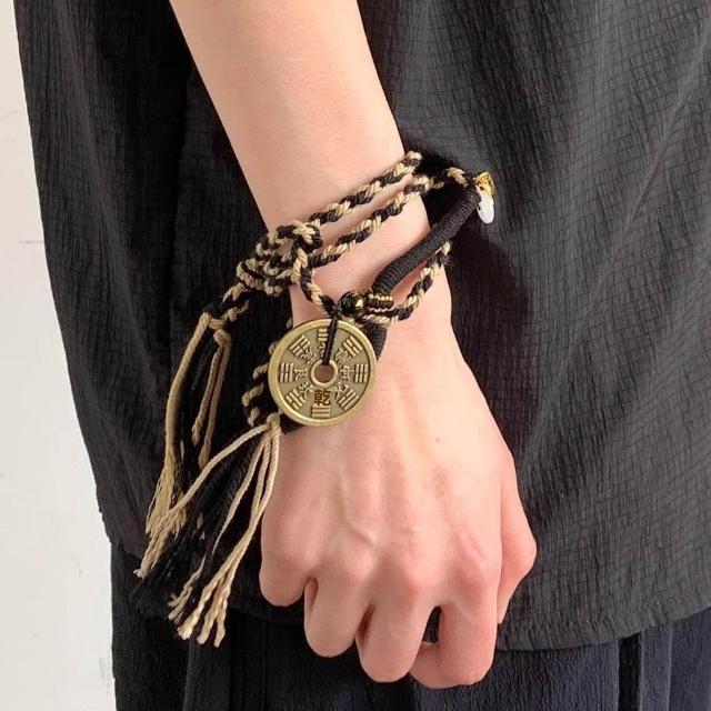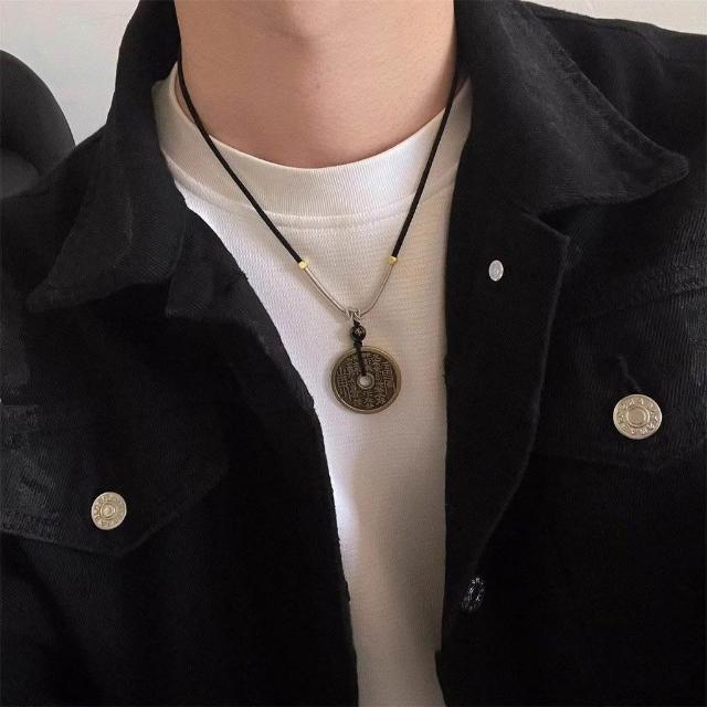 山鬼花錢新中式禪意項鍊古風冷淡風原創編織繩國風情侶款吊墜飾品