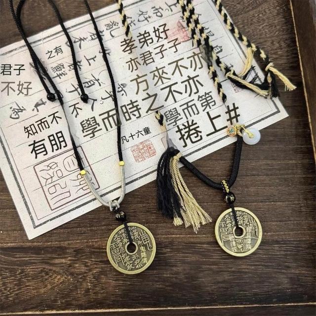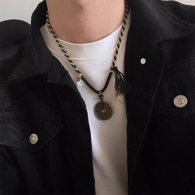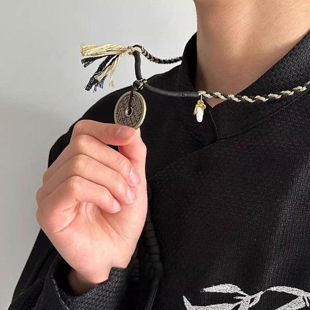 山鬼花錢新中式禪意項鍊古風冷淡風原創編織繩國風情侶款吊墜飾品