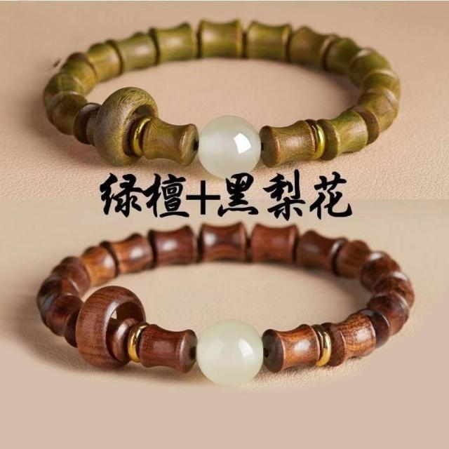 精緻串珠綠檀木手串網紅竹節高升手鍊好運男女考試上岸閨蜜禮物