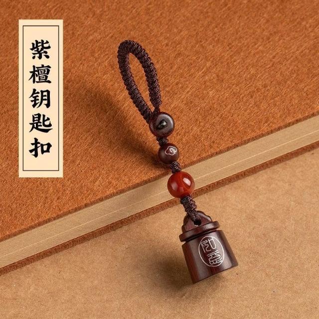 紫檀木秤砣汽車鑰匙扣鑲銀稱心如意u盤手機掛件黑檀情侶包包掛飾