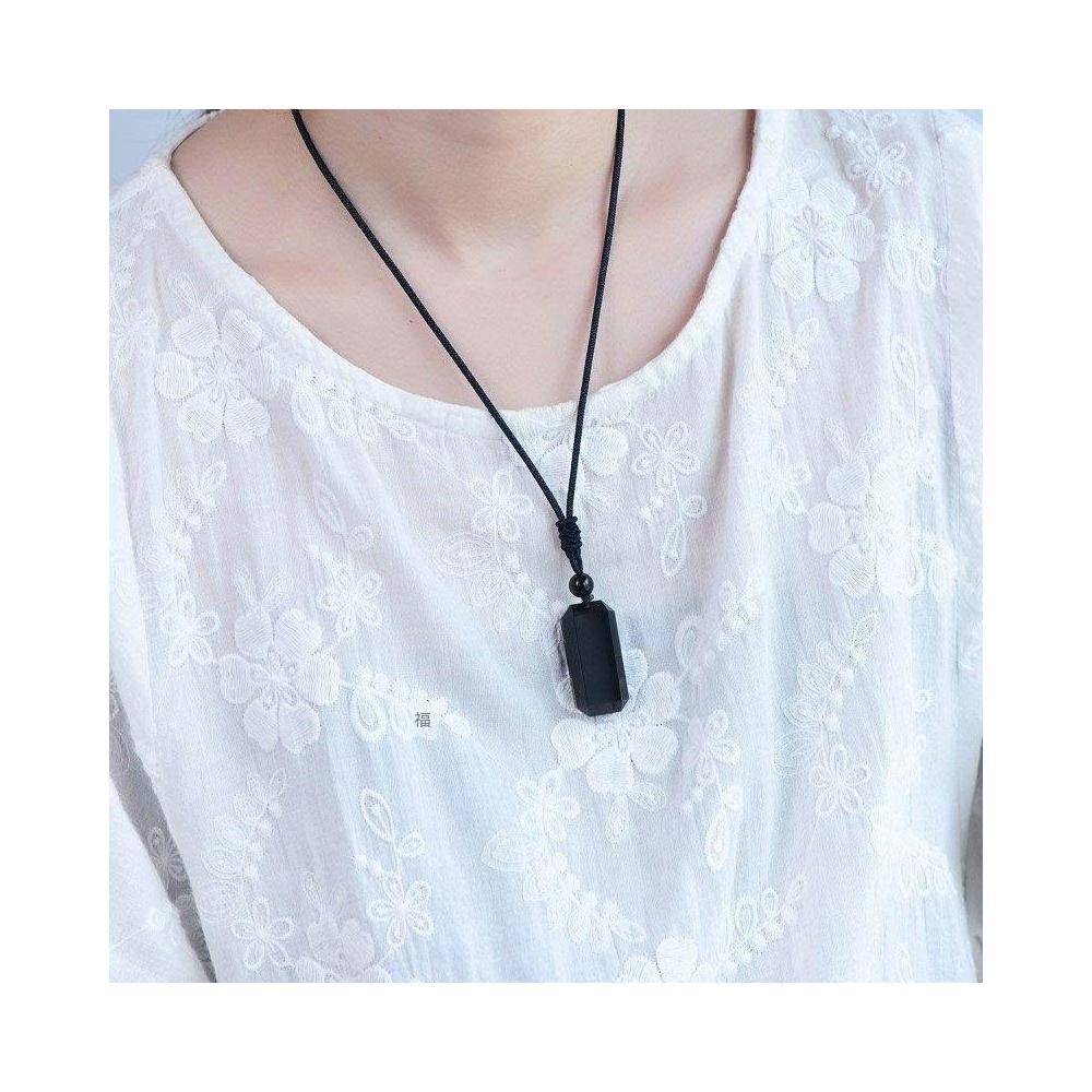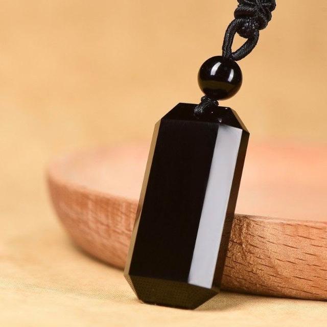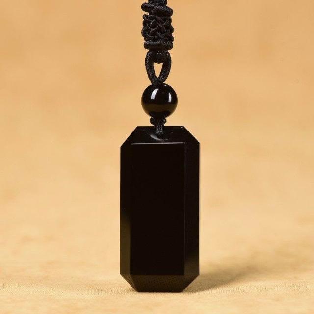 天然黑曜石無事牌項鍊 平安牌吊墜 情侶禮物 跨境商品3.6*1.6釐米