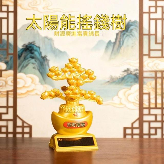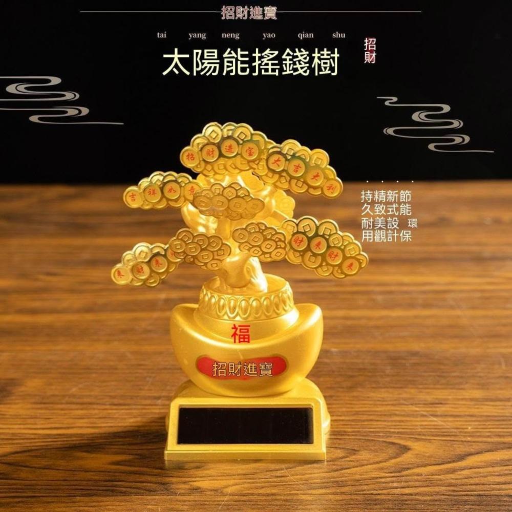 新款復古款招財貓擺件 自動擺動金樹搖太陽能充電收銀臺車載擺件