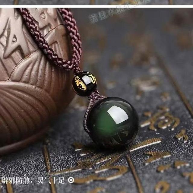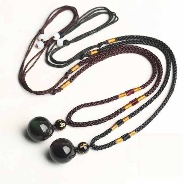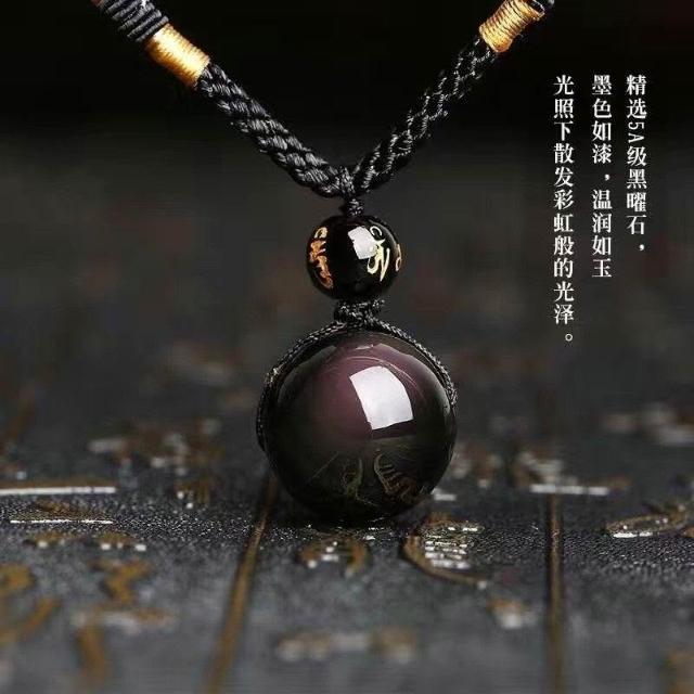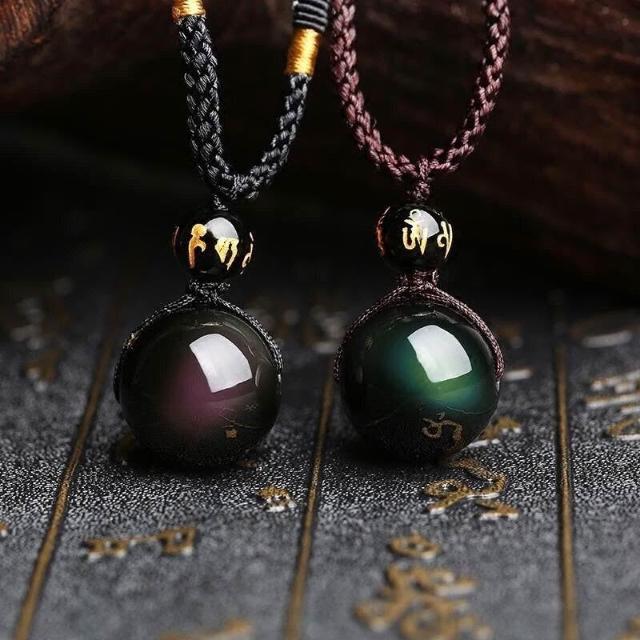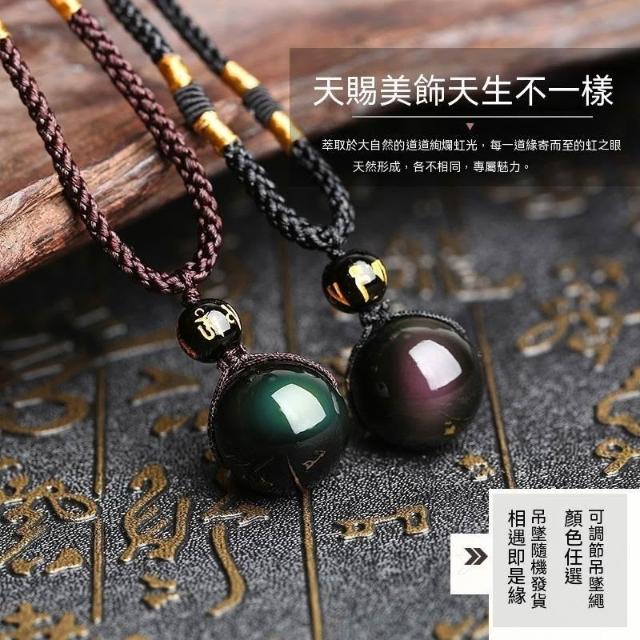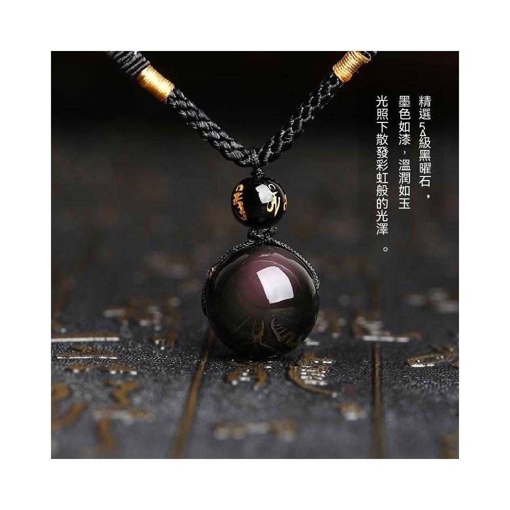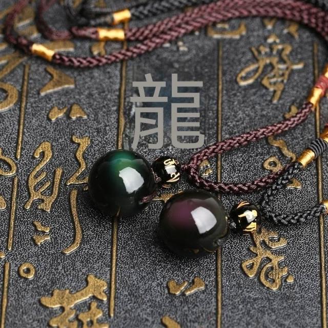 天然黑曜石轉運珠項鍊男女情侶鏈雙彩眼水晶彩吊墜送吊墜招財轉運