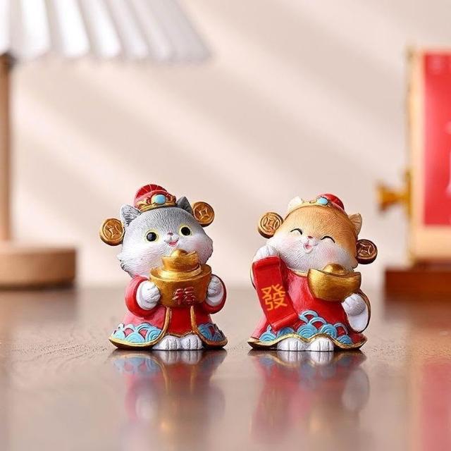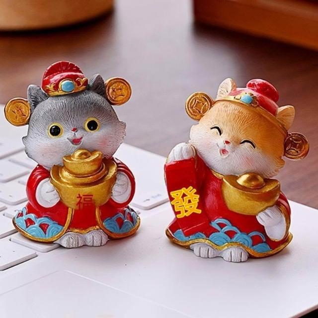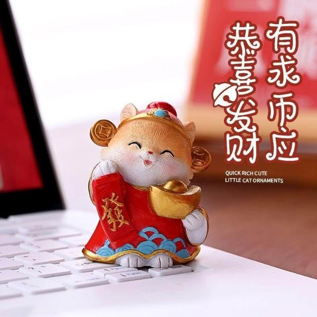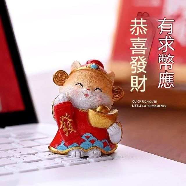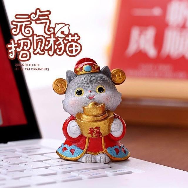 招財貓擺件辦公桌工位電腦桌面裝飾喜慶貓咪小擺件車載解壓小禮物