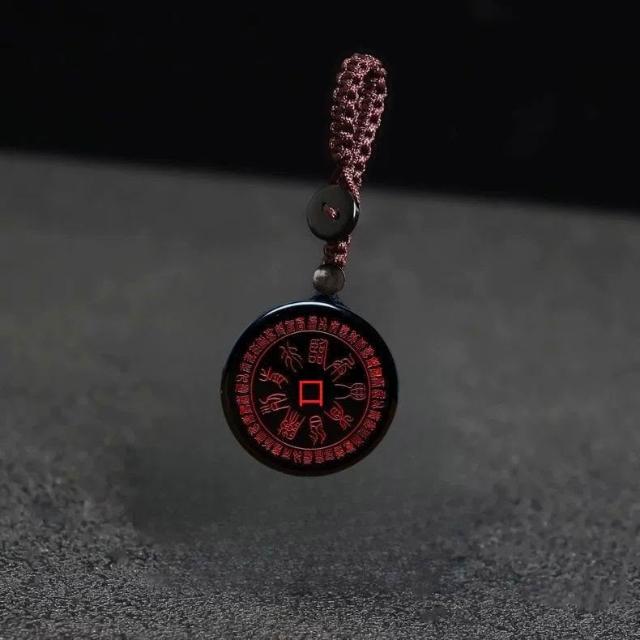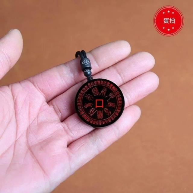 天然黑曜石十字天經吊墜道家九字真言掛件臨兵鬥者皆陣列前行項鍊