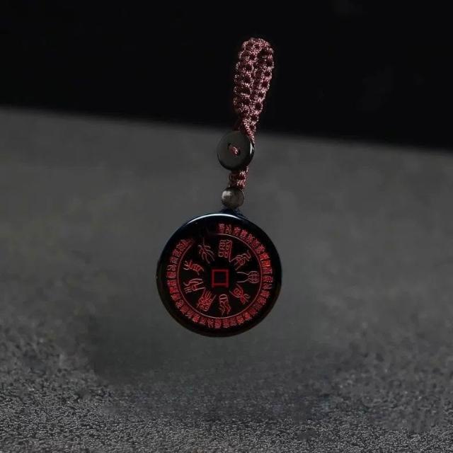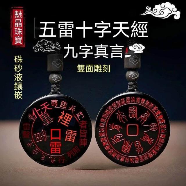 天然黑曜石十字天經吊墜道家九字真言掛件臨兵鬥者皆陣列前行項鍊