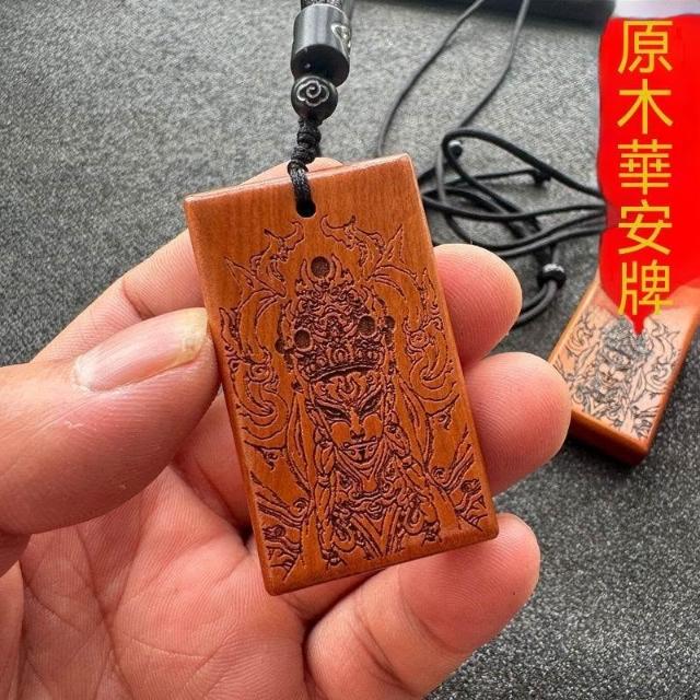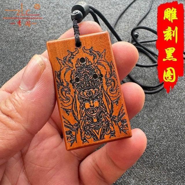 桃木木雕刻黑色白鶴童子官將首平安無事牌吊墜國風紅色護身符
