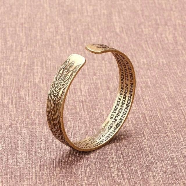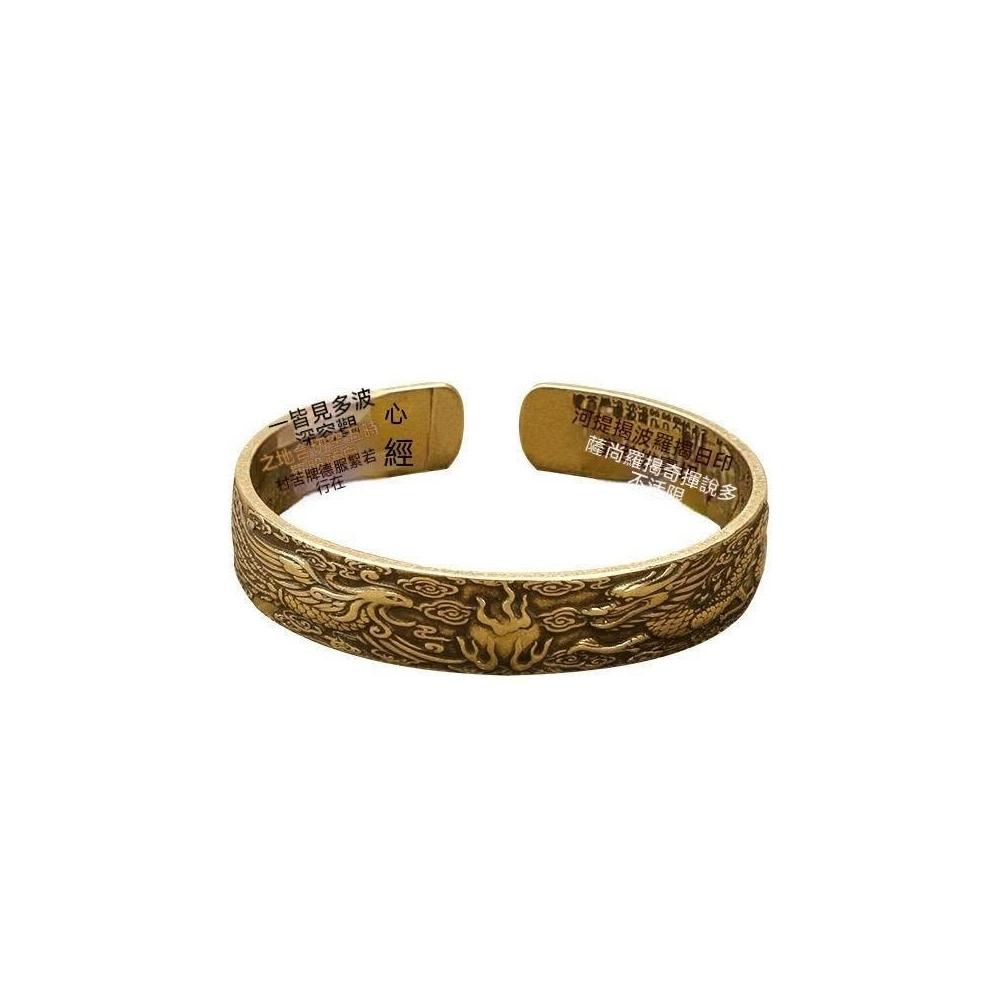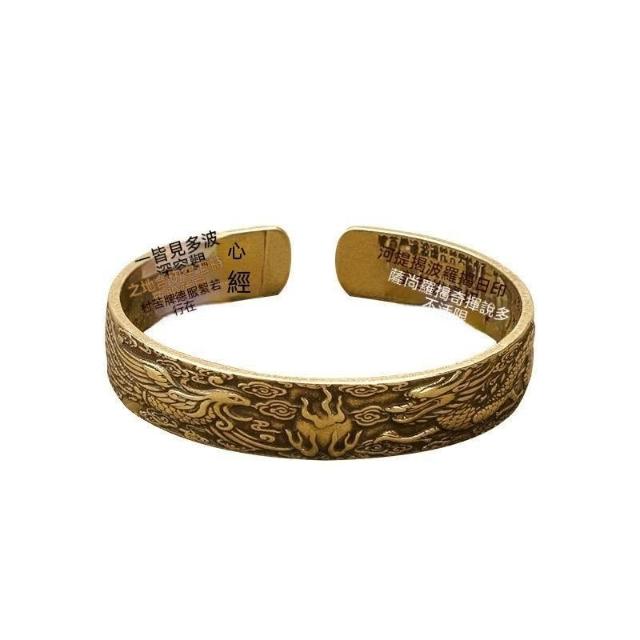 復古黃銅招財花紋手鐲開口手工雕刻雕花招財龍鳳戲珠手鐲手環男女