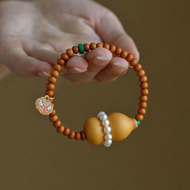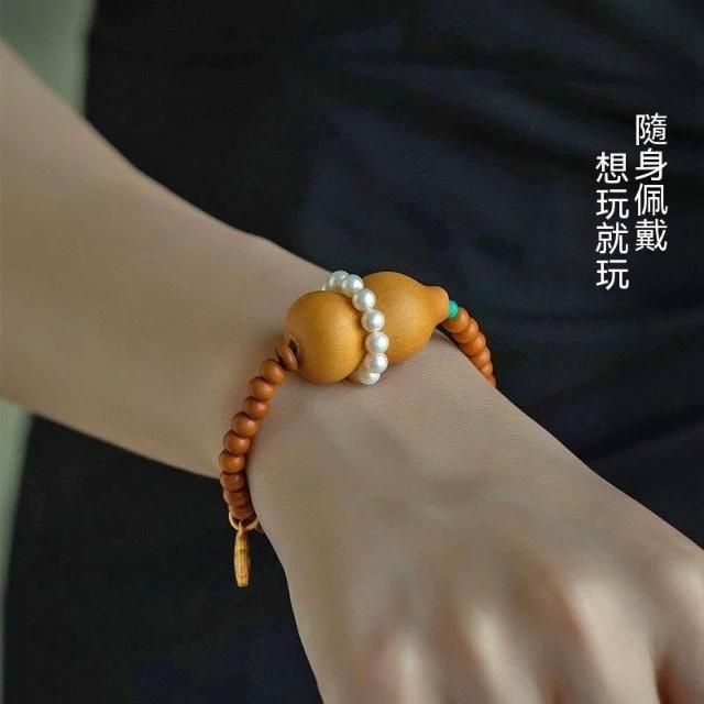 新品創意手捻天然葫蘆手鍊星月菩提橄欖核小米珠寶葫蘆文玩手串
