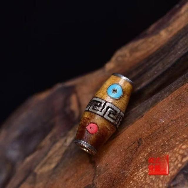 藏傳牛骨松石瑪瑙老銀鑲嵌天珠吊墜犛牛骨掛墜藏式文玩飾品藏式