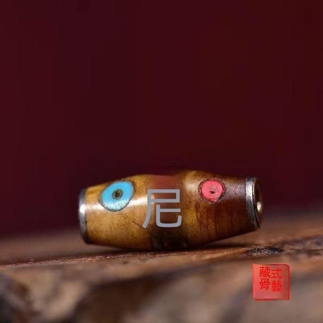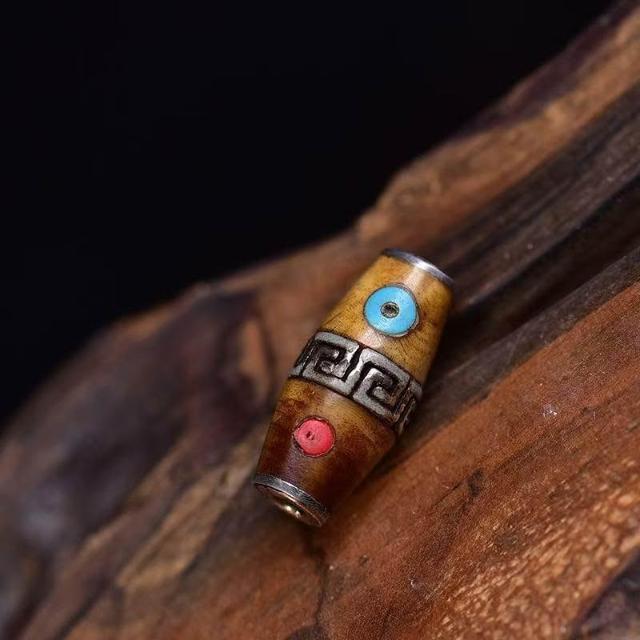 藏傳牛骨松石瑪瑙老銀鑲嵌天珠吊墜犛牛骨掛墜藏式文玩飾品藏式