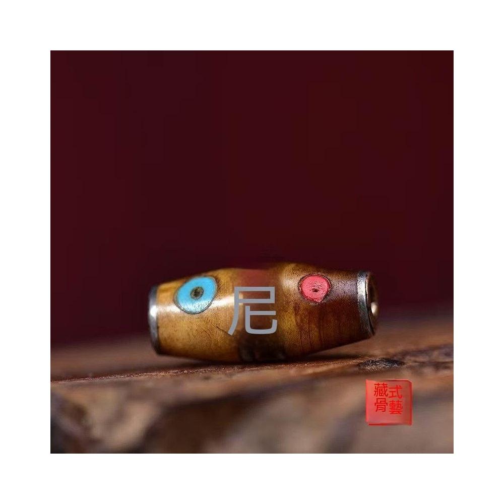 藏傳牛骨松石瑪瑙老銀鑲嵌天珠吊墜犛牛骨掛墜藏式文玩飾品藏式