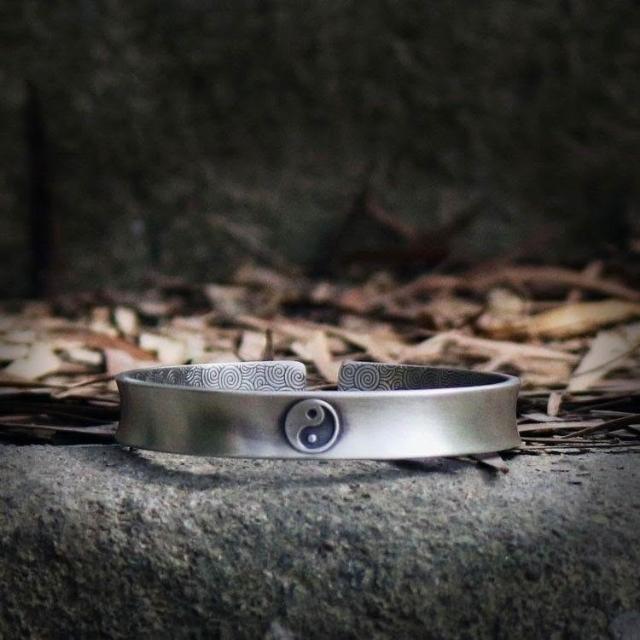 新款手鐲男女士陰陽魚道家太極八卦國潮個性復古開口祥雲小衆刻字