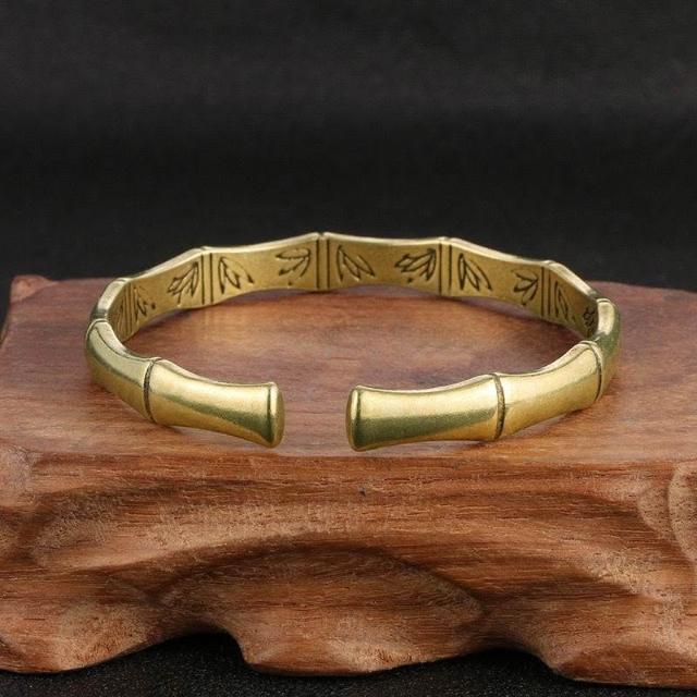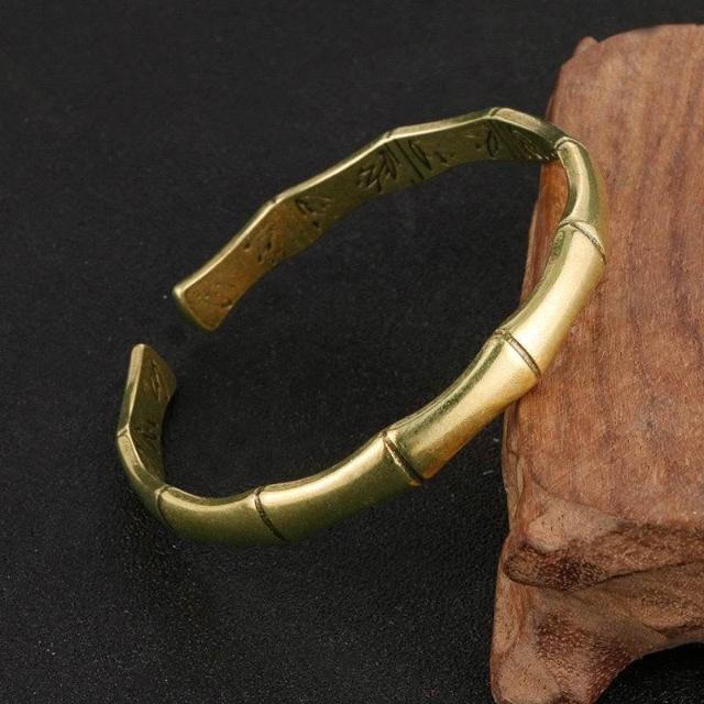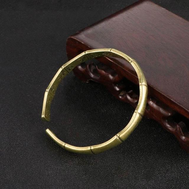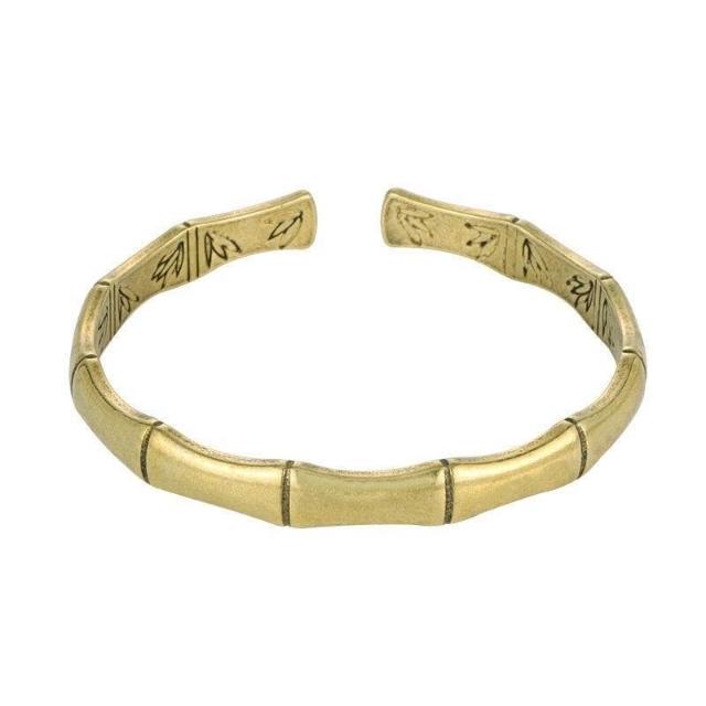 新款實心純銅手鐲女做舊黃銅民族風簡約百搭開口鐲子飾品古風手工